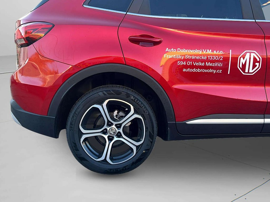 Základní výbava:, Bezpečnost, Systém nouzového volání E-Call, Systém monitorování tlaku v pneumatikách (TPMS), Elektronický imobilizér, Čelní airbagy řidiče a spolujezdce (x2), deaktivace airbagu spolujezdce, Boční airbagy řidiče a spolujezdce (x2), hlavové (okenní) airbagy vpředu a vzadu (x2), Systém ISOFIX na zadních sedadlech, Upozornění na nezapnuté bezpečnostní pásy., Asistenční systémy MG Pilot, Automatické nouzové brzdění s detekcí chodců, cyklistů i motocyklů (AEB), Varování před čelním nárazem (FCW), Systém udržování v jízdním pruhu (LKA) včetně systému nouzového udržování v jízdním pruhu (ELK), upozornění na opuštění jízdního pruhu (LDW) a prevence opuštění jízdního pruhu (LDP), Inteligentní asistent rychlosti (ISA), Upozornění na únavu řidiče (UDW), Tempomat, Systém sledování mrtvého úhlu (BSD), Asistent změny jízdního pruhu (LCA), Upozornění na vozy přijíždějící z boku při couvání (RCTA)., Světla a viditelnost, LED denní světlomety, LED světlomety, LED zadní světlomety, Dešťový senzor, Zadní stěrač, Funkce "follow me home"., Exteriér, 17" kola z lehkých slitin, pneumatiky 215/55R17, Sada pro nouzovou opravu pneumatik, Vnější zpětná zrcátka vyhřívaná a elektricky sklopná, Střešní lišty, Zadní zatmavená okna., Interiér, Startování pomocí tlačítka, Bezklíčový přístup, 12V zásuvka Středová loketní opěrka s úložným prostorem, Volant potažený kůží, Výškově a podélně nastavitelný volant., Sedadla, Čalounění sedadel ze syntetické kůže, Přední sedadla vyhřívaná, Sedadlo řidiče elektricky nastavitelné v 6 směrech, Sedadlo spolujezdce manuálně nastavitelné ve 4 směrech, Zadní řada sedadel sklopná v poměru 60:40, Komfort, Manuální klimatizace, Elektricky ovládaná přední a zadní okna, okno řidiče s funkcí AUTO a ochranou proti přivření, Zadní parkovací senzory, 360° parkovací kamera, Audio a konektivita, 12,3" přístrojový štít, Audiosystém s 12,3" barevným dotykovým displejem (iSmart Lite), Zrcadlení smartphonu skrze Apple CarPlay®/Android Auto™, Bluetooth® handsfree, Rádio AM/FM/DAB+, 6 reproduktorů, 2 USB porty, Aplikace iSmart - lokalizace, kontrola stavu vozu, zamykání a odemykání vozu na dálku z chytrého telefonu