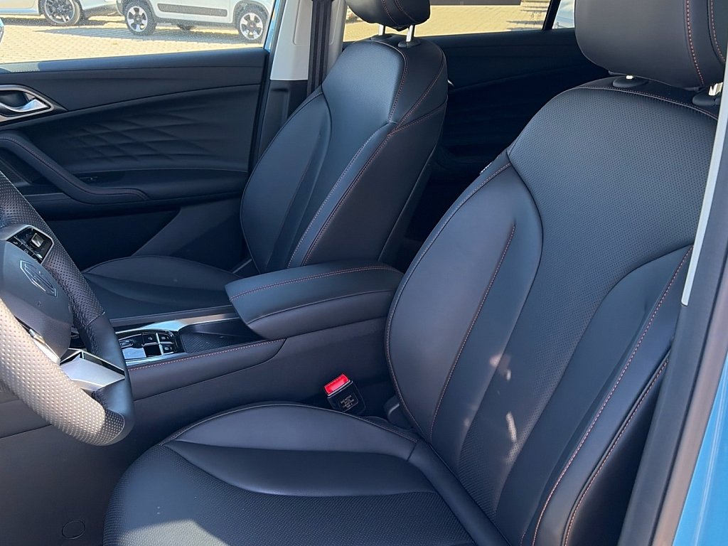 Upozornění na vozy přijíždějící z boku při couvání (RCTA), Upozornění na vozy přijíždějící zezadu při otevírání dveří, Systém udržování v jízdním pruhu (LKA), Upozornění na změnu jízdního pruhu (LCA), Tempomat, Inteligentní adaptivní tempomat s funkcí udržování v jízdním pruhu (ICA), Inteligentní asistent rychlosti (ISA), Automatické nouzové brzdění s detekcí chodců, cyklistů i motocyklů (AEB), Upozornění na únavu řidiče (UDW), Inteligentní asistent rychlosti (ISA), Varování před čelním nárazem (FCW), 8 reproduktorů, Audiosystém s 12,3" barevným dotykovým displejem (iSMART), Bez názvu, Zrcadlení smartphonu skrze Apple CarPlay®/Android Auto™, 4 USB porty (2 vpředu, 2 vzadu), Bluetooth® handsfree, Online služby (další služby zahrnují Počasí, Živý provoz, Youtube, Spotify, TikTok), Rádio AM/FM/DAB+, Čelní airbagy řidiče a spolujezdce (x2), spínač deaktivace airbagu spolujezdce, 3bodový bezpečnostní pás na zadních sedadlech (x3) s předpínačem a omezovačem zátěže (x2), Boční airbagy řidiče a spolujezdce (x2), hlavové (okenní) airbagy vpředu a vzadu (x2), Elektronický stabilizační systém (ESP), Systém detekce mrtvého úhlu (BSD), Antiblokovací brzdový systém (ABS), Asistent rozjezdu do kopce (HLA), Elektronický systém rozdělení brzdného účinku (EBD), Upozornění na nezapnuté bezpečnostní pásy, Výškově nastavitelné pásy vpředu, Systém ISOFIX na zadních sedadlech (2x), Systém monitorování tlaku v pneumatikách (TPMS), 3bodový bezpečnostní pás na předních sedadlech s předpínačem a omezovačem zátěže (x2), Sada pro nouzovou opravu pneumatik, Přední mlhové světlomety, 19" kola z lehkých slitin Diamond Blade, Funkce "follow me home", Stříbrné střešní ližiny, Zadní parkovací senzory, Přední parkovací senzory, LED světlomety, Elektricky ovládané páté dveře, LED denní světlomety, LED zadní světlomety, Elektricky nastavitelná, vyhřívaná a automaticky sklopná vnější zpětná zrcátka s pamětí, Automatické světlomety, Zatmavená zadní okna, Středová loketní opěrka vpředu s úložným prostorem, Bezklíčový přístup a startování pomocí tlačítka, Přední i zadní okna elektricky ovládaná, všechna s funkcí AUTO, Výškově a podélně nastavitelný volant, Osvětlení interiéru vpředu i vzadu, 12V zásuvka, 360° parkovací kamera, Speed Sensing Locking, 12,3" digitální přístrojový štít, Dešťový senzor, Elektrická parkovací brzda (EPB) s funkcí Auto Hold, Dvouzónová automatická klimatizace, Centrální zamykání dveří s dálkovým ovládáním, Sedadlo řidiče elektricky nastavitelné v 6 směrech s nastavením bederní opěrky a paměťovou funkcí, Zadní sedadlo sklopné, dělitelné v poměru 60:40, 3 opěrky hlavy na zadních sedadlech, Přední vyhřívaná sedadla, Bílá Pearl